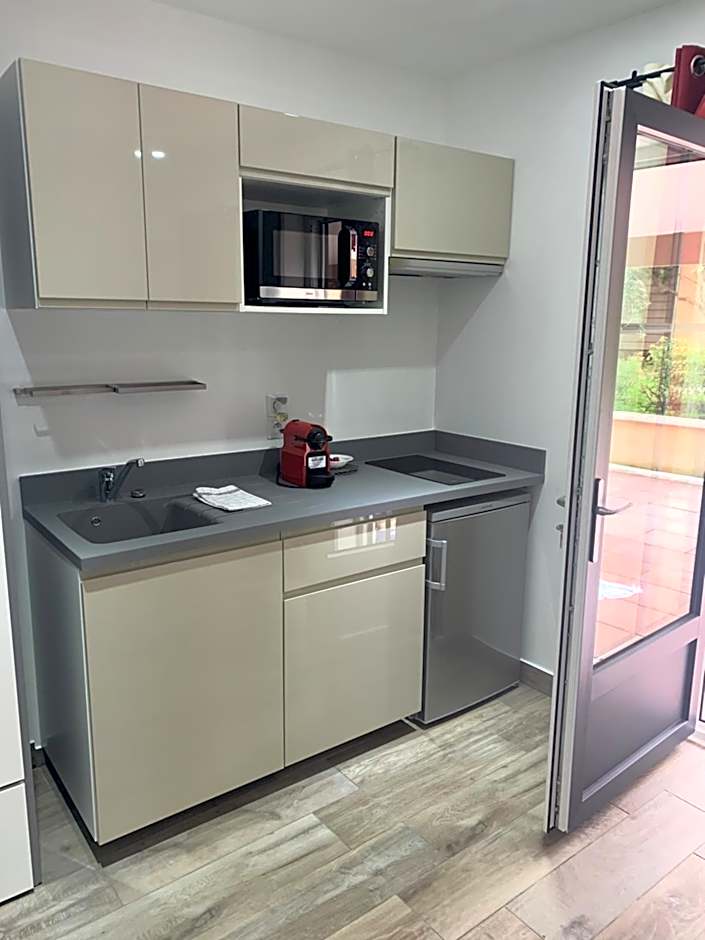 Superior Studio with terrace is 269 square feet and includes either a king-size bed 150-183 width or 2 single beds 80-130 width plus hairdryer, tea and coffee making facilities , and ironing set and is Wheelchair-accessible.